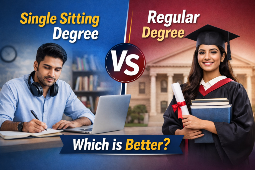 In today’s fast-changing career landscape, education is no longer a one-time journey—it’s a continuous upgrade. Many working professionals, dropouts, and individuals with career gaps are now exploring faster alternatives like single sitting degree or one sitting degree programs. At the same time, traditional regular degree programs still remain the most widely accepted academic path.